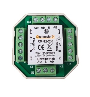 - Rollladen Trennrelais für 1 od. 2 Antriebe mit Einzelbedienung RM-T2-230 von rohrmotor24 (Amazon)